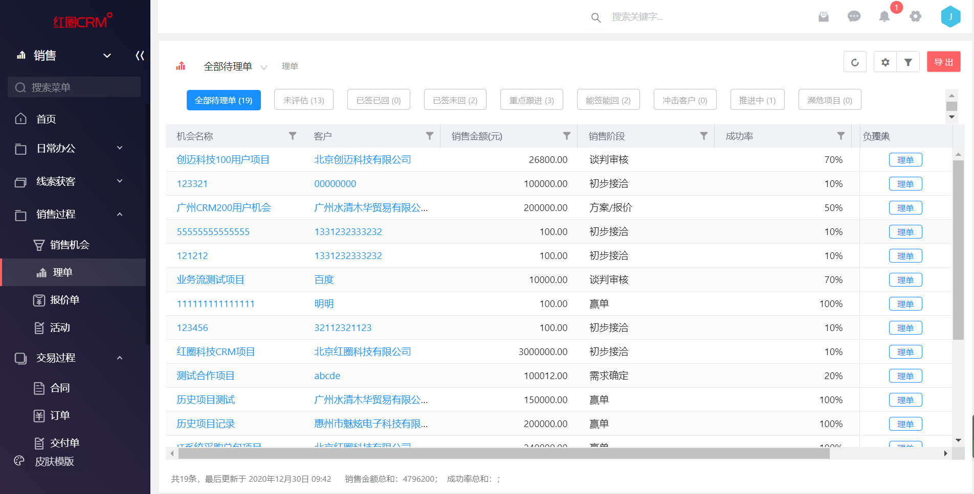 在銷(xiāo)售管理方面,2020 年紅圈 CRM 也有了長(zhǎng)足的改進(jìn),新增了交付單和報(bào)價(jià)單管理,為實(shí)現(xiàn) CPQ 奠定基礎(chǔ)。增加變更單,支持合同變更。新增找線索功能,幫助企業(yè)高效獲取銷(xiāo)售線索。還有優(yōu)化改進(jìn)理單和公海池等等。在銷(xiāo)售管理方面的不斷打磨演進(jìn),使紅圈 CRM 更好的服務(wù)于裝備制造行業(yè)。